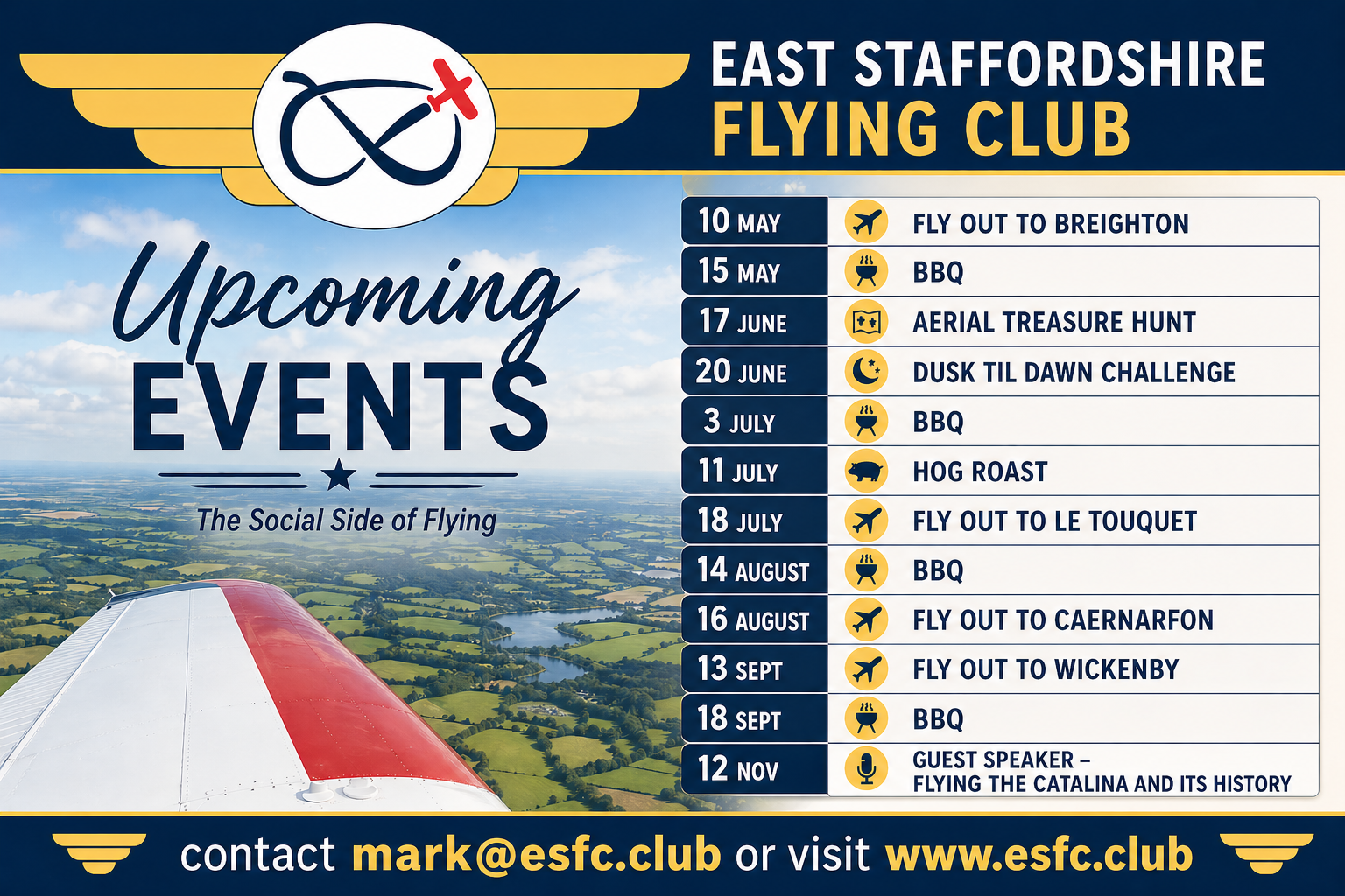 Based at Tatenhill Airfield near Burton on Trent, East Staffordshire Flying Club (ESFC) provides the social aspect of club flying for pilots and aviation enthusiasts in the region.